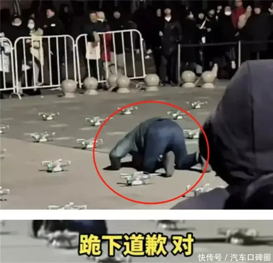 随后,一位略有光头的中年须眉,走到时事中间,当着成百上千东谈主的面,深深地跪了下去,而且双手合十作揖,向人人示意歉意。其他责任主谈主员见状赶快向前搀扶,但这位中年须眉仍然抓意向围不雅的东谈主群跪了一圈。