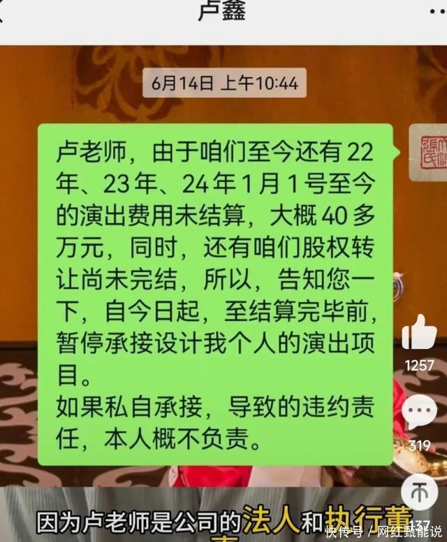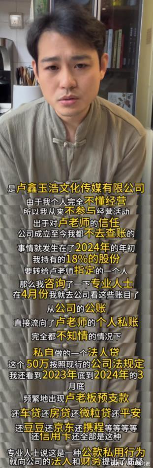 接着张玉浩继续晒出凭据,用来告诉大家,他跟卢鑫之间的经济纠纷。 据了解,张玉浩跟卢鑫共同拓荒了一家公司,成见权在卢鑫那边,张玉浩只靠18%的股份分成。 关联词,卢鑫不诚挚,不足时给对方分成,连2023年献技的一部分报恩以及2024年的全部报恩,卢鑫齐莫得给对方。