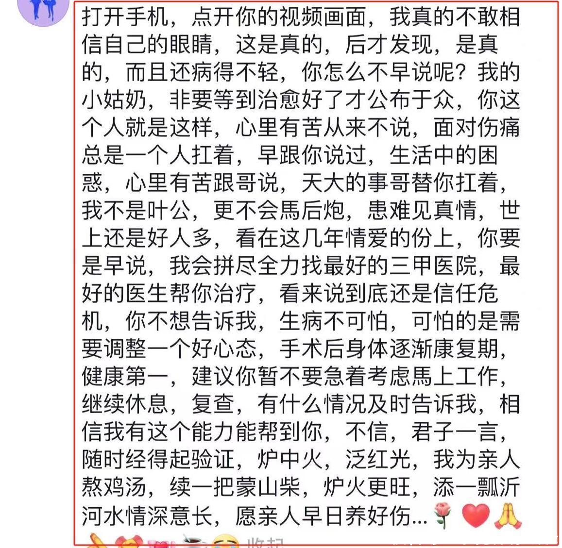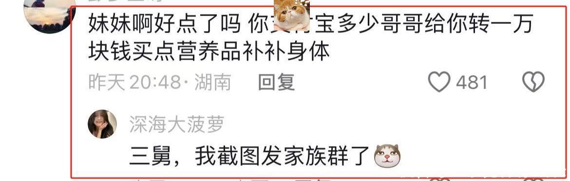 一位广东的粉丝说:“妹妹,你若何不跟哥说呢?一定要等康复了再出院,但愿妹妹要听哥的话。”