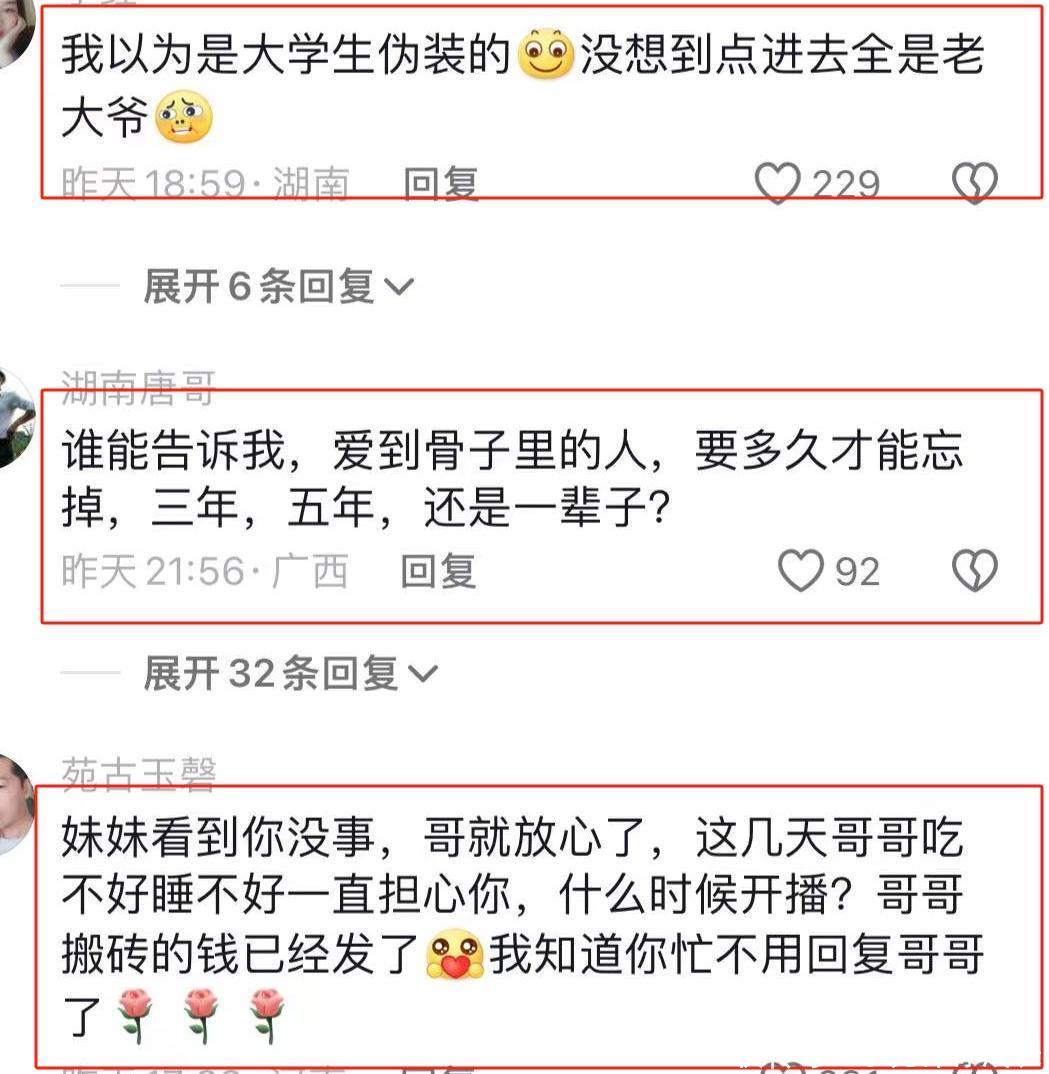 有网友暗示,本以为留言是年青东说念主伪装,一个个点开,发现确凿齐是大叔,“一笑倾城”病了,把这些大叔给怜爱的。